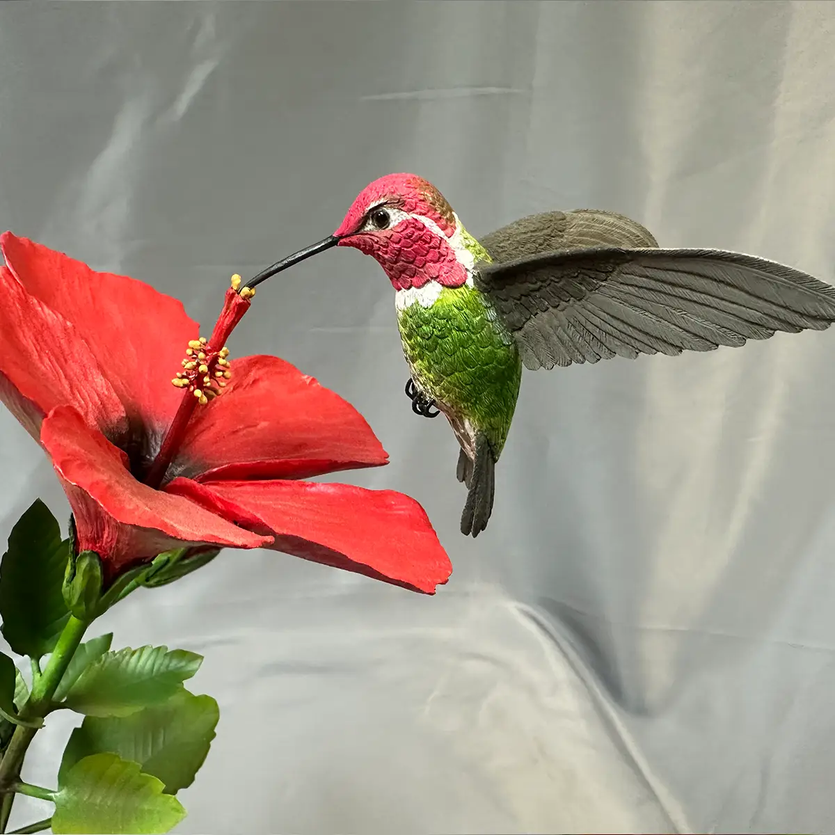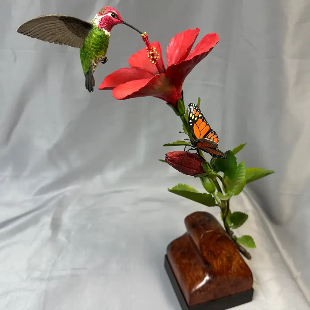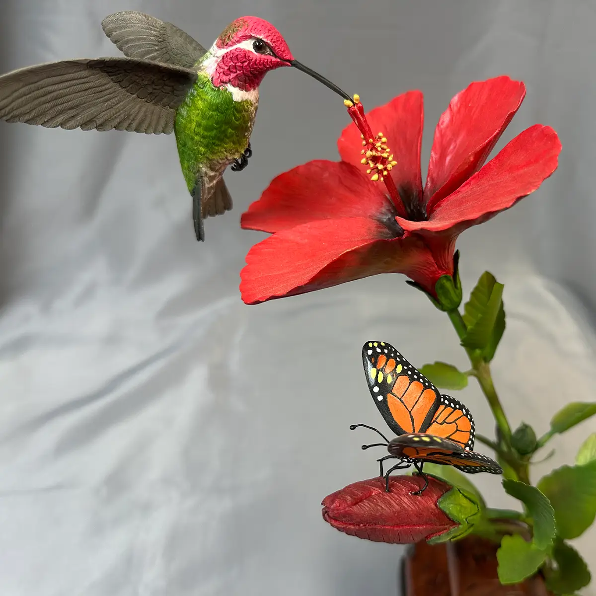 Anna’s Hummingbird and Monarch Butterfly on a Hibiscus flower